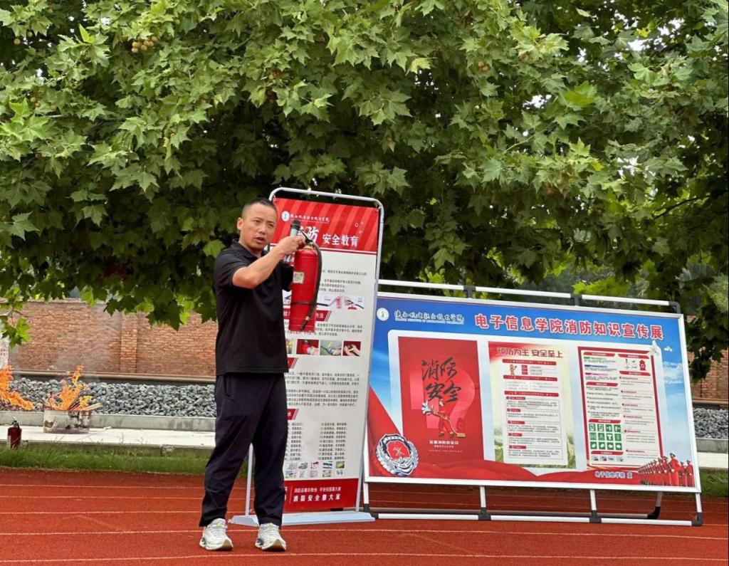 在安全地带,学院邀请了保卫处王龙老师为师生们进行消防知识培训,详细讲解了干粉灭火器等消防器材的使用方法,并现场进行了灭火演示。师生们们认真聆听,细心观察,对消防安全知识有了更深入的了解。