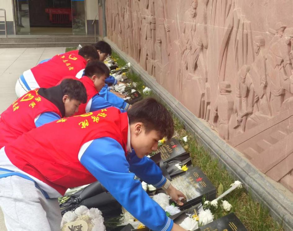 步访英烈纪念馆,擦拭墓碑守初心。仪式结束后,师生步入宝天铁路英烈纪念馆参观学习。一幅幅历史照片、一件件珍贵文件,生动展现了宝天铁路建设者不畏艰险、英勇奋斗的光辉历程。在“英雄墙”前,学生志愿者轻拭墓碑尘埃,以细致行动守护红色记忆。