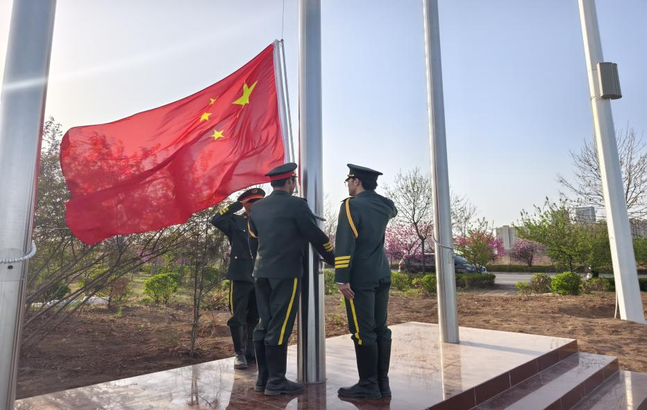 随着激昂的《义勇军进行曲》奏响,升旗手振臂一挥,鲜艳的五星红旗冉冉升起。全体人员面向国旗行注目礼,现场气氛庄严肃穆。师生们目光专注,心中满是对祖国的崇敬和对先烈的缅怀之情。在国歌声中,五星红旗迎风飘扬,仿佛在诉说着革命先烈的英勇事迹和伟大精神。