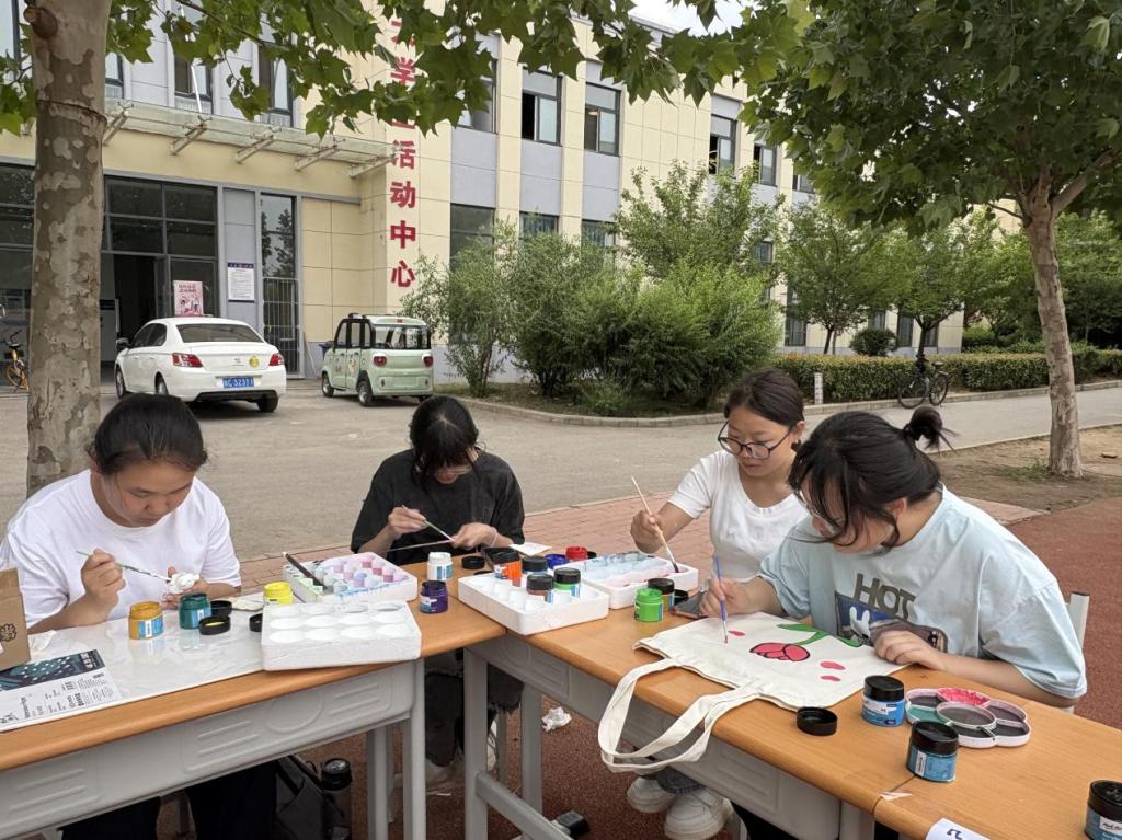 活动现场,色彩斑斓的颜料、形态各异的创作材料整齐摆放,营造出浓厚的艺术氛围。在帆布包涂鸦区,同学们充分发挥想象力,将传统端午元素如粽子、龙舟与现代潮流图案相结合,原本素白的帆布包在画笔的勾勒下焕发出独特魅力。有的同学绘制了憨态可掬的卡通粽子,有的则描绘了气势磅礴的龙舟竞渡图,每一个帆布包都承载着创作者的个性与情感。