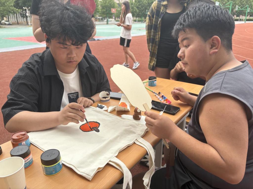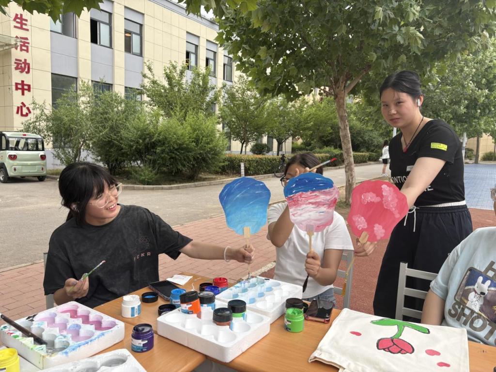 漆扇创作区则充满了古典韵味。同学们手持空白漆扇,或临摹传统端午纹样,或挥洒自由创意,在扇面上勾勒出一幅幅精美的画作。扇骨轻摇间,端午的传统文化气息与青春活力相互交融,成为活动现场一道亮丽的风景线。