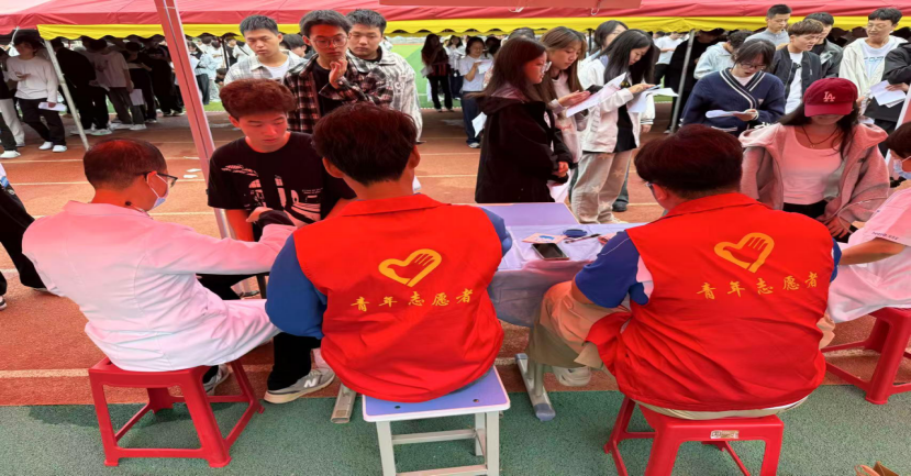 体检环节是迎新工作的重点之一。为避免新生长时间排队,志愿者们分批次带领新生前往学校大操场,现场志愿者们分工明确,有的协助医护人员维持秩序,有的为空腹抽血的同学递上面包和牛奶,还有的全程护送身体不适的新生前往观察区休息。