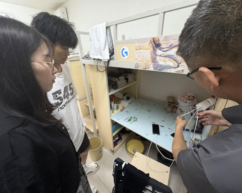 此次检查围绕“安全生产月”安全隐患排查活动主题,重点对学生宿舍的用电安全、消防安全及财产安全等方面进行了全面细致的排查。满书记在检查中强调:“宿舍是学生学习生活的重要场所,安全工作必须常抓不懈。同学们要切实提高安全意识,养成'人走断电、人走锁门'的良好习惯,共同维护校园安全稳定。”