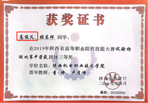 在校期间,高俊凡便以出色的表现赢得了师生的广泛赞誉,他曾先后荣获“军训先进个人”称号、校级“三等奖学金”、校技能大赛“工程测量”项目团体三等奖、2019年陕西省高等职业院校技能大赛“试验检测”赛项团体三等奖等荣誉,为之后的职业发展打下了坚实基础。