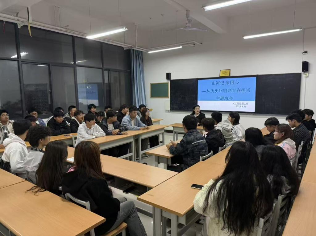 为引导学生铭记历史,感悟家国情怀,激发青年学子的使命感与责任感,让青春担当在新时代的征程中熠熠生辉,2025年9月21日晚,我院召开了一场意义非凡的主题班会,班会以“山河记·家国心——从历史回响到青春担当”为主题,吸引了全体同学积极参与。