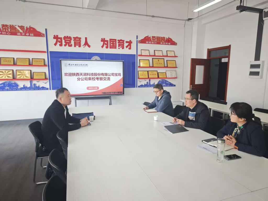 为深化校企合作,推动产学研深度融合,助力区域经济发展,星空体育APP下载积极行动,通过多种渠道广泛对接各类与学院开设专业适配的单位。3月28日,陕西天润科技股份有限公司宝鸡分公司经理鲁海洲来校开展校企合作交流,星空体育APP下载院长卢彦峰、党支部书记满春燕、学生工作办公室主任李帅、专业课教师贾强出席了本次会议。