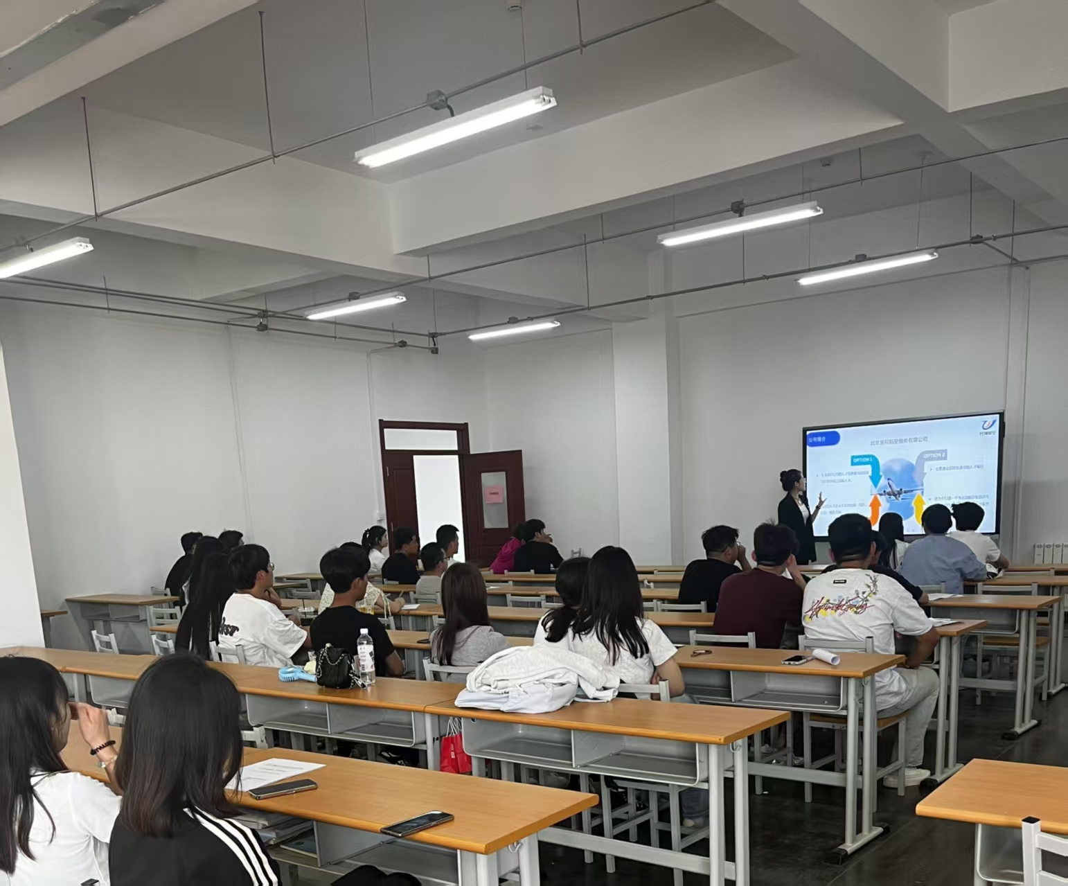 宣讲会上,两家企业的招聘负责人通过视频向同学们全面展示企业概况、核心务和未来战略规划。此外,他们还聚焦毕业生的求职关注点,通过图片和案例详细介绍员工的工作环境、岗位职责、工作地点以及薪资福利待遇,重点解读了岗位需求与招聘要求,系统阐述了企业的培训体系和职业晋升通道。最后,他们鼓励同学们就关心的问题现场提问,欢迎有意向的同学参加面试。