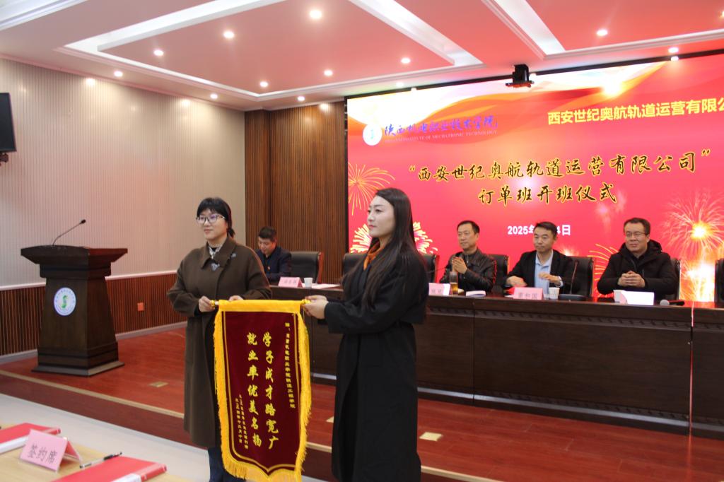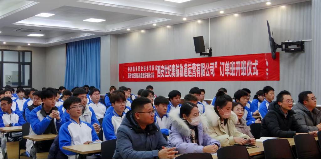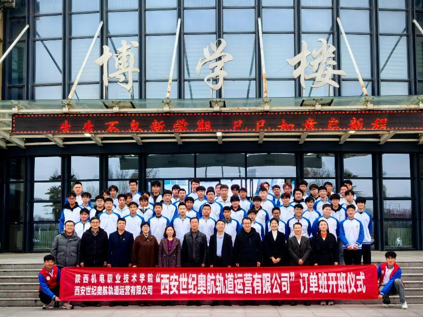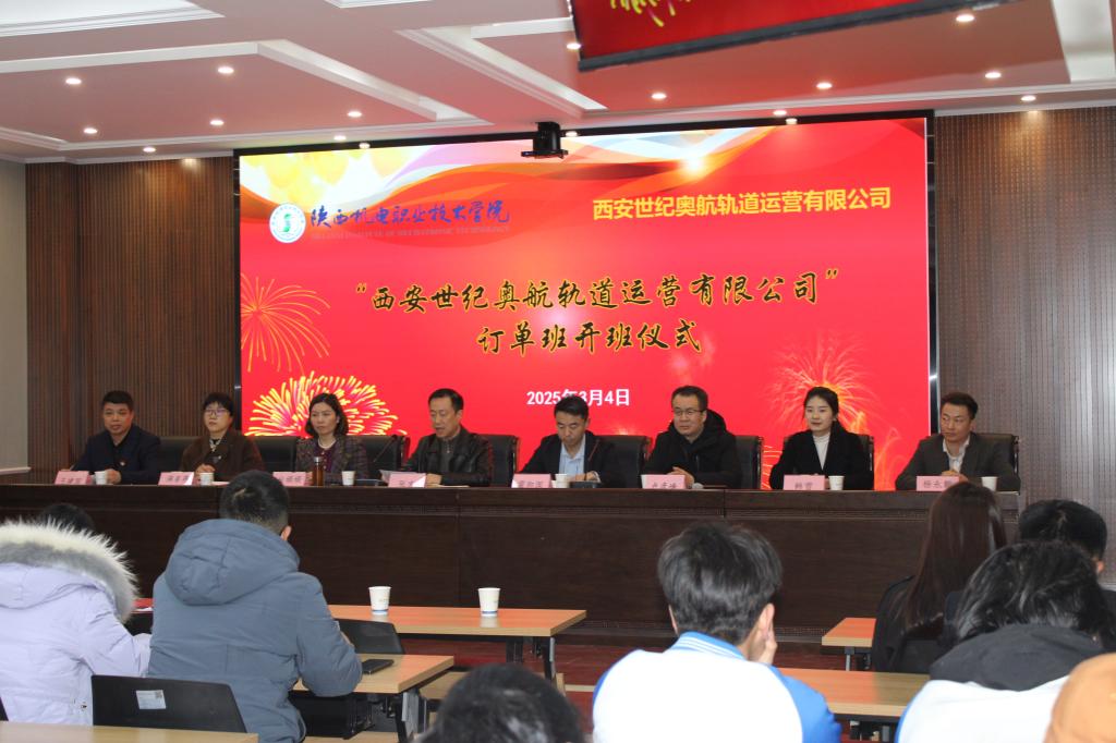 为深化校企合作,提升学生的实践能力和就业竞争力,推动产学研一体化发展。2025年3月4日,陕西机电职业技术学院与西安世纪奥航轨道运营有限公司联合成立的“西安世纪奥航轨道运营有限公司”订单班开班仪式在我校蟠龙校区博学楼111会议室隆重举行。校党委委员、副院长张克,教务处处长、校企合作处处长白娟娟,星空体育APP下载院长卢彦峰,星空体育APP下载党支部书记满春燕,西安世纪奥航轨道运营有限公司董事长雷和国,西安世纪奥航轨道运营有限公司总经理韩雪等出席了此次开班仪式,星空体育APP下载教师及全体订单班学生参加了本次仪式。